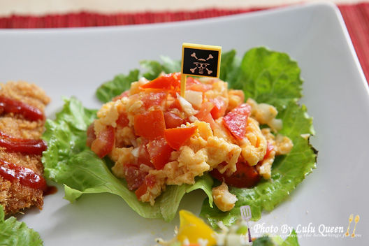 Lulu配了兩樣配菜,番茄炒蛋和炒雜菜